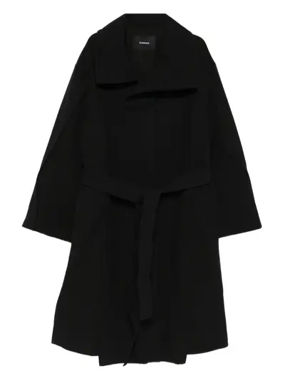 black cut out detail wrap design belted waist wide sleeves notched lapels