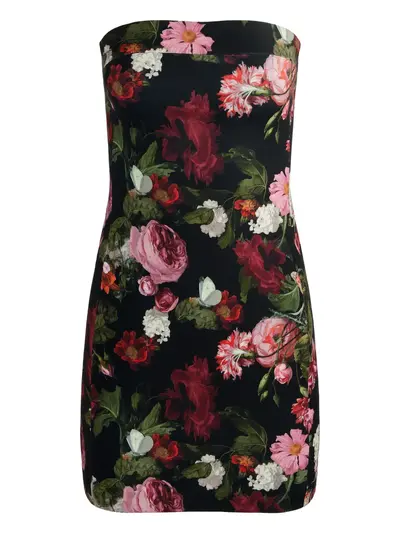 black floral print strapless mini length straight hem