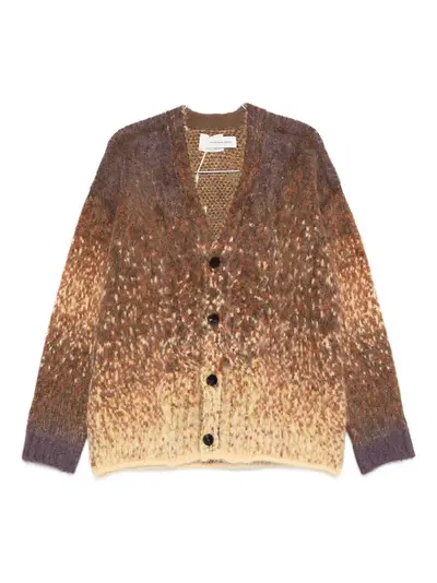 brown speckled and ombré design V-neck front button fastening long sleeves ribbed hem