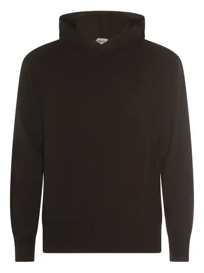 black hooded neck long sleeve virgin wool