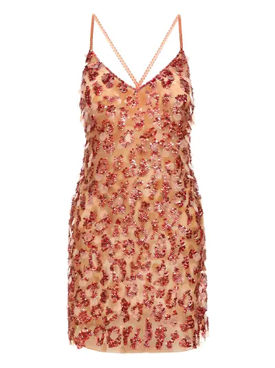 red sequin embellishment spaghetti straps cross back-straps V-neckline