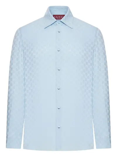 light blue silk GG jacquard pattern point collar button fastening long sleeve button cuffs