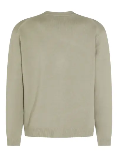 sage green signature fox motif V-neck button fastening long sleeves ribbed trim wool