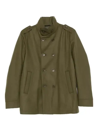 military green double-breasted button fastening high neck shoulder epaulettes welt pockets