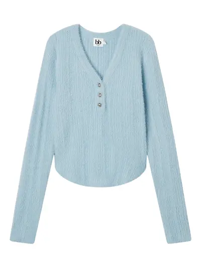 light blue button detail V-neck long sleeves