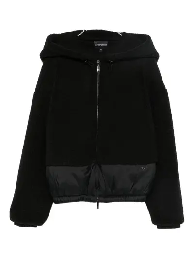 black drawstring hood zip fastening elasticated hem