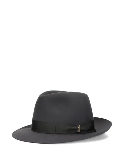 black felt material medium brim grosgrain ribbon band ribbon buckle pinched crown