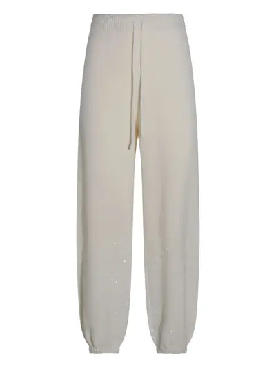 cream sequin embellishment elasticated waistband drawstring fastening elasticated ankles wool blend