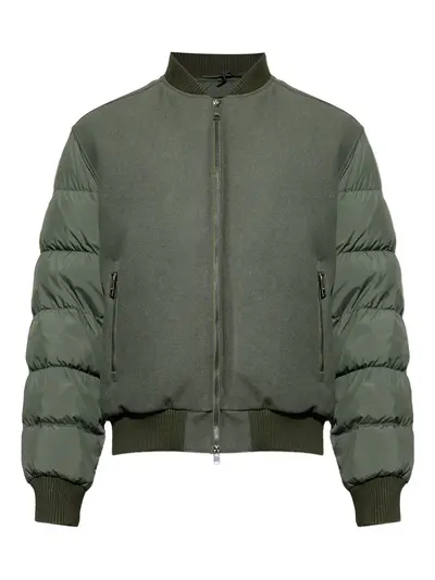green wool padded sleeves zip fastening ribbed trims zip pockets