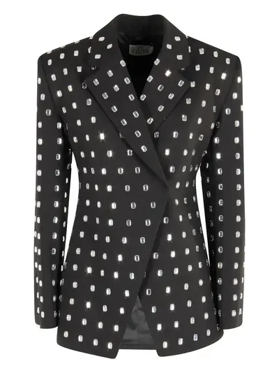 black rhinestone embellishment notched lapel long sleeves single-breasted fastening