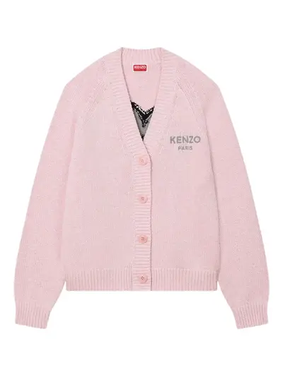 pastel pink cotton-blend back Boke Flower motif chest logo detail button fastening V-neck long sleeve