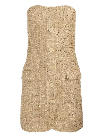 beige button embellishment two flap pockets strapless mini length zip fastening