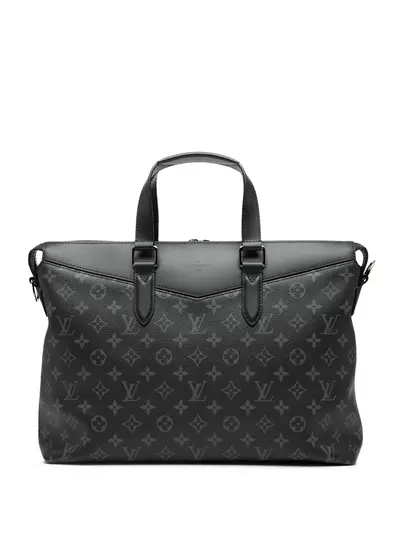 monogram canvas body flat leather handles top zip closure interior slip pockets black Serial Number: AR0128 This item has no inclusions. Condition: EXCELLENT. This previously owned item is in near-perfect condition with no signs of damage or use. Due to the exclusivity of this item and its limited availability, processing and delivery might take longer than usual. Please refer to the photos on this product page for a detailed view of the item, including any damages declared.