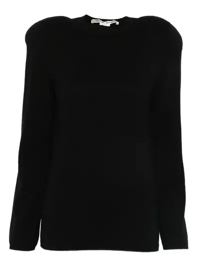 black padded shoulders round neck long sleeves ribbed knit straight hem