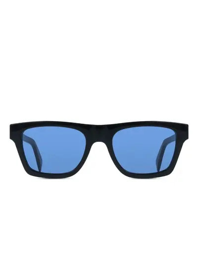 black blue lenses rectangle frame straight arms These glasses come with a protective case.