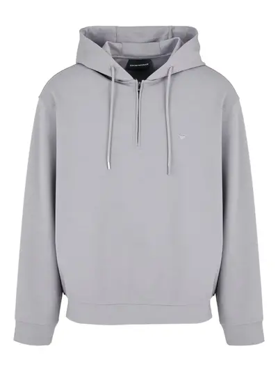 light grey drawstring hood half-zip fastening long sleeves logo detail ribbed hem