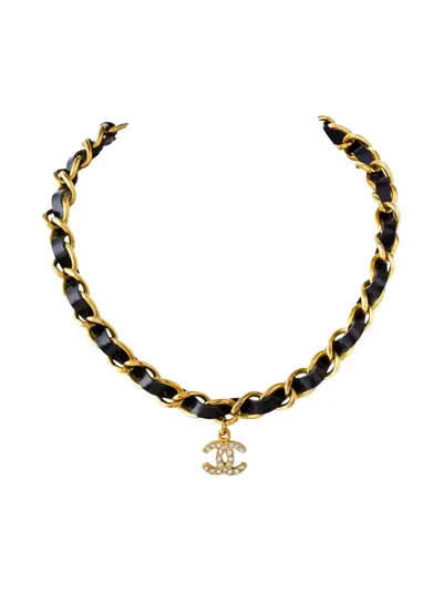 1995 gold leather detail crystal embellishment chain detail logo charm clasp fastening Normal everyday use and external agents may reduce the lustre of gemstones and gold surfaces. To maintain, use specific, non-abrasive products specially meant for cleaning jewellery.