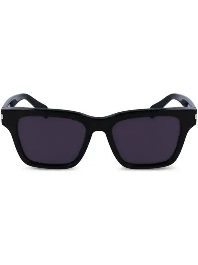 black acetate square frame grey tinted lenses UV-protective lenses logo print at the arm straight arms curved tips These glasses come with a protective case.
