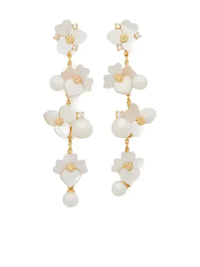 white floral detail drop design pearl detail gold-tone hardware post-back fastening These earrings come as a pair.