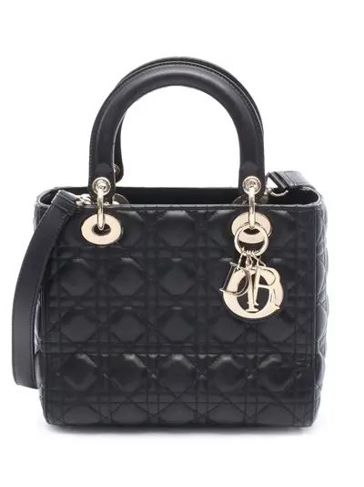 quilted lambskin leather body flat leather top handles detachable strap fold in flap closure interior zip and slip pockets black Inclusions: shoulder strap. Condition: EXCELLENT. This previously owned item is in near-perfect condition with no signs of damage or use. Due to the exclusivity of this item and its limited availability, processing and delivery might take longer than usual. Please refer to the photos on this product page for a detailed view of the item, including any damages declared.