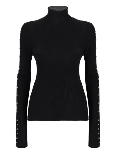 black ribbed texture turtleneck embellished long sleeves