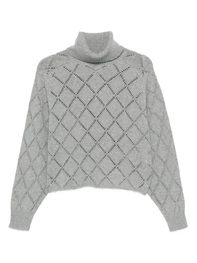 grey merino wool blend diamond pattern knit roll neck long sleeves ribbed cuffs and hem