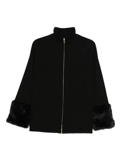 black fur trim front zip fastening high neck long sleeves