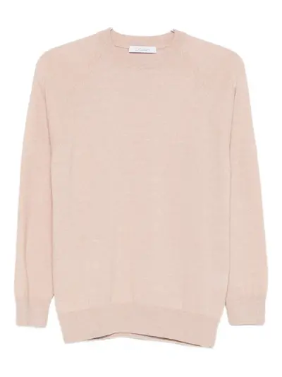 light pink cashmere blend crew neck long sleeves ribbed cuffs and hem