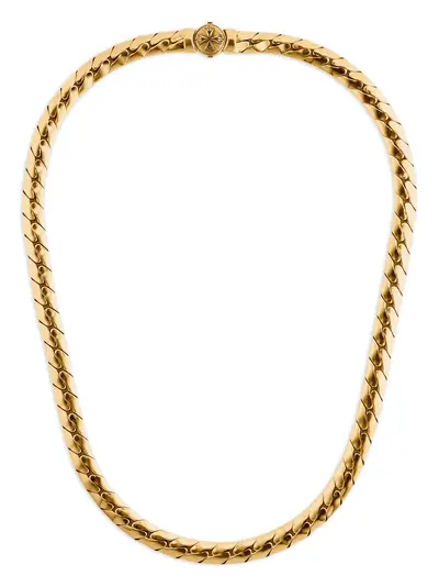 gold-tone chain logo detail Normal everyday use and external agents may reduce the lustre of gemstones and gold surfaces. To maintain, use specific, non-abrasive products specially meant for cleaning jewellery.