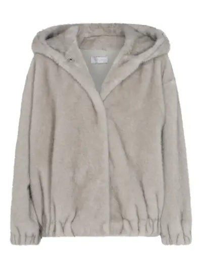 grey classic hood front concealed fastening long sleeves elasticated hem