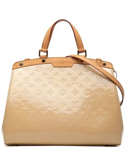 vernis leather body with vachetta leather trim flat vachetta leather handles flat vachetta leather strap top zip closure interior zip and slip pockets brown Serial Number: SR3183 Inclusions: shoulder strap. Condition: GOOD. This previously owned and used item is in good condition with minimal signs of use. This may include fading of material or plating and scratches. Due to the exclusivity of this item and its limited availability, processing and delivery might take longer than usual. Please refer to the photos on this product page for a detailed view of the item, including any damages declared.