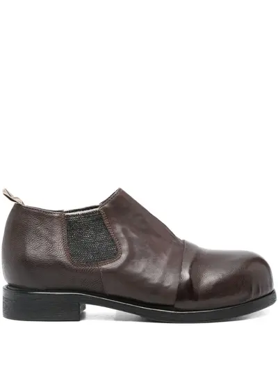 brown pull-tab at the rear panelled design elasticated side panels flat sole round toe