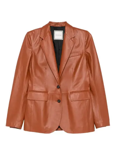brown notched lapel front button fastening front flap pockets long sleeves straight hem
