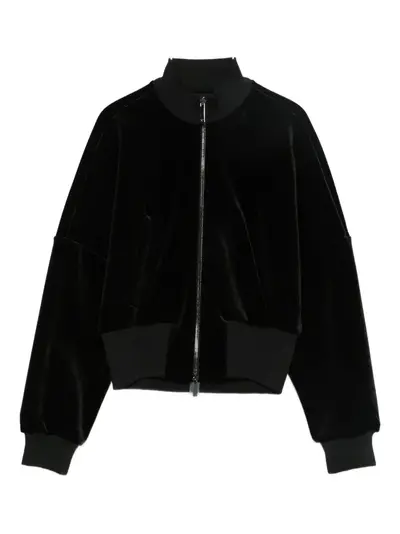 black zip fastening high neck long sleeves ribbed hem side pockets