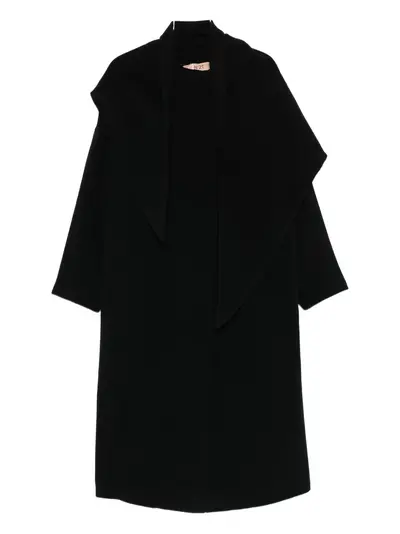 black front button fastening attached scarf drop shoulder