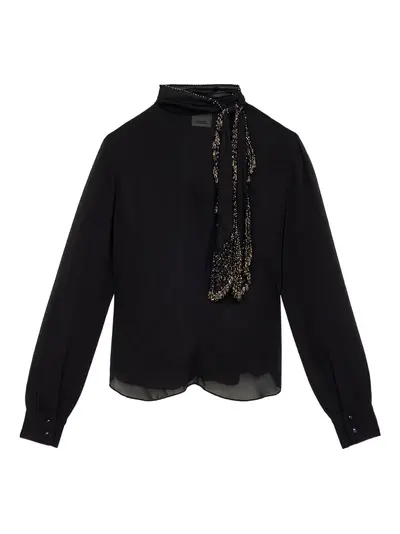 black beaded detail tie fastening long sleeves buttoned cuffs sheer finish