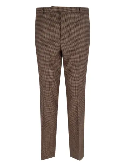 brown houndstooth pattern zip fastening belt loops rear welt pockets front pockets
