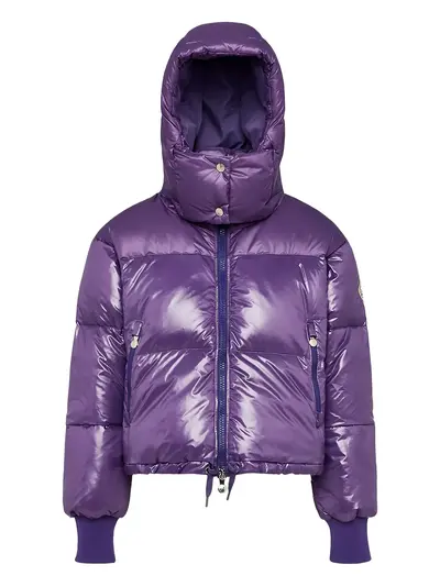 purple classic hood front zip fastening long sleeves side zip-fastening pockets drawstring hem ribbed cuffs