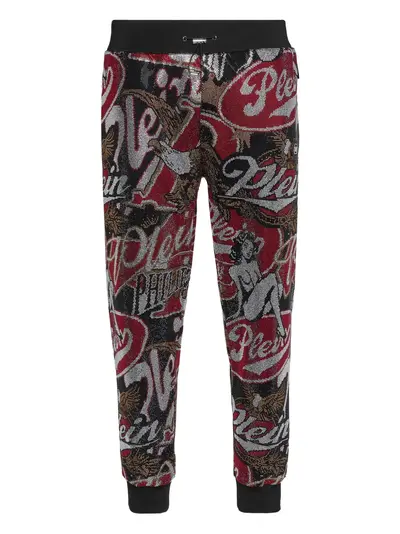 black rhinestone embellishment logo pattern elasticated waistband cuffed hems drawstring fastening