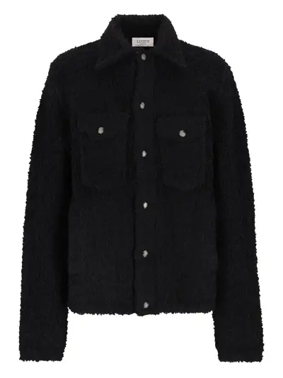 black button fastening two chest pockets spread collar long sleeves straight hem