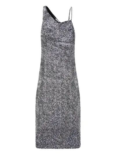 silver-tone sequin embellishment crystal embellishment one-shoulder design side slit sleeveless
