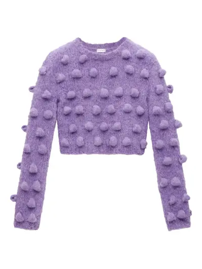 purple bobble detail round neck long sleeves gold-tone logo charm