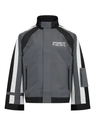 grey zip fastening high neck panelled design zip pockets sleeve pocket