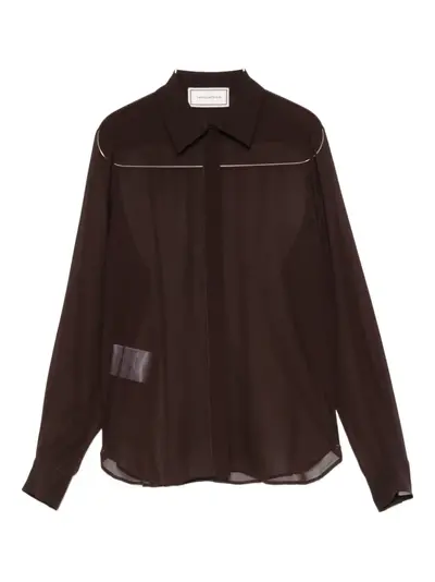 brown sheer panels long sleeves button fastening classic collar chest patch pocket