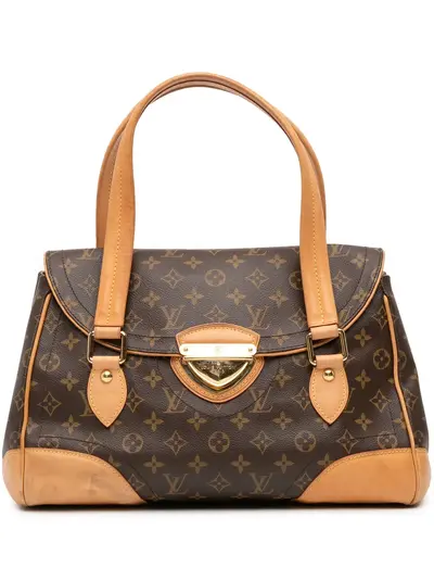 canvas body with vachetta leather trim flat vachetta leather handles front flap with a gold-tone push lock closure exterior back slip pocket interior flap and open pockets brown Serial Number: DU4067 This item has no inclusions. Condition: GOOD. This previously owned and used item is in good condition with minimal signs of use. This may include fading of material or plating and scratches. Please refer to the photos on this product page for a detailed view of the item, including any damages declared.