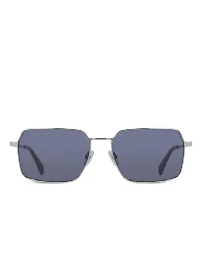 silver-tone metal frame square frame grey lenses subtle detailing These glasses come with a protective case.