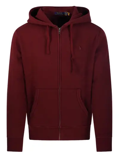 rich ruby hooded zip fastening front pouch pockets Polo Pony embroidery long sleeves