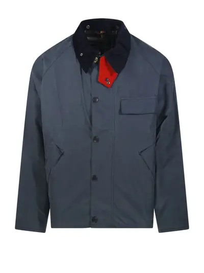blue corduroy collar press-stud fastening chest flap pocket side welt pockets