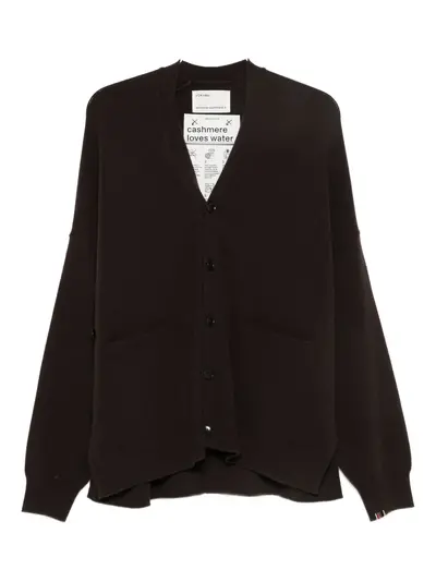 dark brown v-neck cashmere blend front button fastening long sleeves ribbed cuffs and hem
