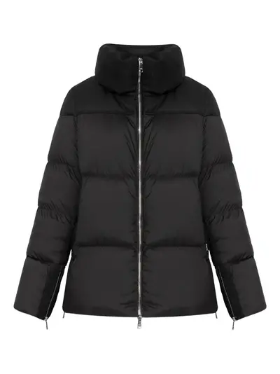 black high neck zip fastening panelled design long sleeves zip detail at cuffs